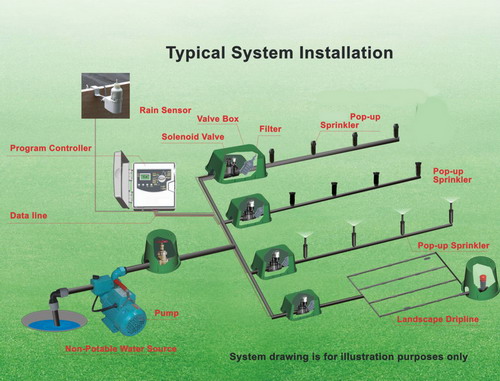 Žinodami sklypo matmenis, laistomų ir nelaistomų plotų išmatavimus, vandens šaltinio vietą ir parinkę reikalingo galingumo ir laistymo kampo purkštukus, galime suprojektuoti ir sumontuoti tokį laistymo sistemos variantą, kuris labiausiai atitiks sklypo reljefą ir laistymo poreikį.